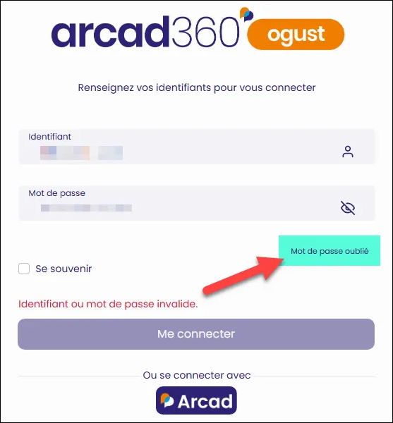 Ci malgré le changement de mot de passe, OGUST affiche le message "Identifiant ou mot de passe invalide".