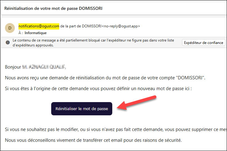 Cliquez sur "Mot de passe oublié" et un mail vous sera envoyé par OGUST.